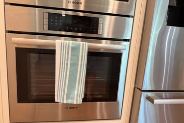 • Kitchen Towel — Soft aqua/white striped or nautical style for that easy coastal pop. Similar absorbent cotton set: [Amazon coastal blue towels link]